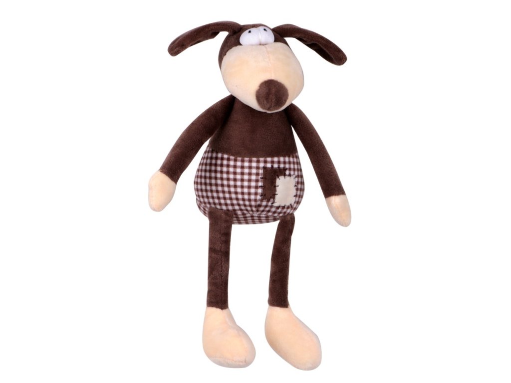 Nádherná hračka pro psy je vyplněna dutým vláknem a uvnitř těla má všito pískátko. Ruce, nohy a uši psa umožňují snadný přenos hračky i pro menší plemena psů.