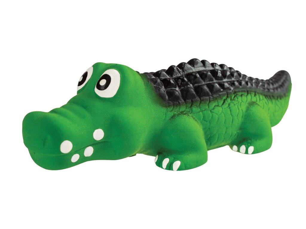 Krokodýlek se zvukem. Hračka je se zvukem (píská). Materiál: silnostěnný latex. Rozměr: 16cm